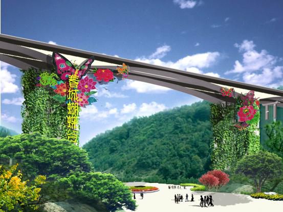 春城蝴蝶谷景區(qū)位于昆明市盤(pán)龍區(qū)雙龍鄉(xiāng)黃龍?bào)湟粠В髂吓c金殿公園相望,并近鄰昆明世博園,總面積545hm2。主要對(duì)入口以及核心節(jié)點(diǎn)景觀進(jìn)行規(guī)劃設(shè)計(jì)。
