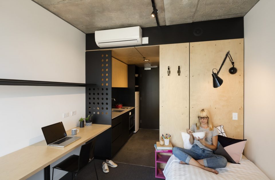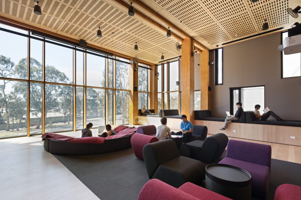 項(xiàng)目坐落于墨爾本本多拉地區(qū),是RMIT大學(xué)的學(xué)生公寓。RMA事務(wù)所受RMIT所托設(shè)計(jì)學(xué)生公寓,其設(shè)計(jì)將為在校生提供最好的居住環(huán)境。RMA事務(wù)所與RMIT以及公寓的經(jīng)營(yíng)者Unilodge緊密合作,保證居住在公寓里的人可以享受到公共空間帶來(lái)的各種便利,并在核心區(qū)設(shè)計(jì)充足的學(xué)生活動(dòng)功能。該建筑的設(shè)計(jì)是簡(jiǎn)單的偏斜十字架,被澳大利亞古老的植物環(huán)繞。這些樹木包括以Wurundjeri氏族祖先命名的Keelbundoora Scarred Trees。