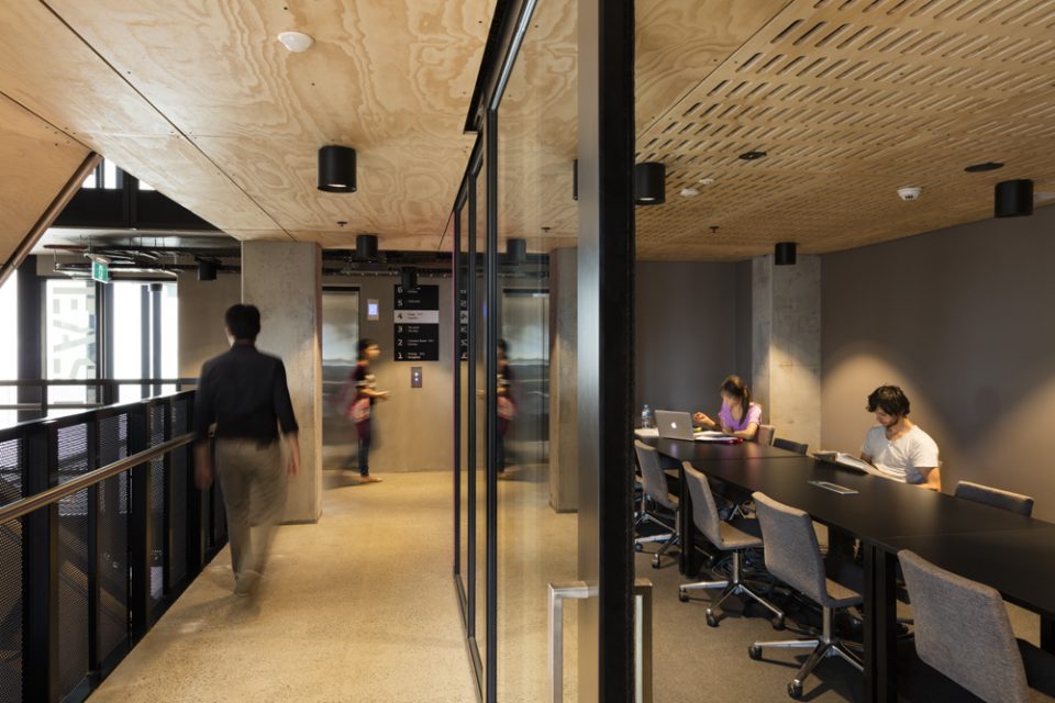 Situated within an Aboriginal heritage site on Clements Drive at its Bundoora West Campus, BWSA (Bundoora West Student Accommodation) is RMIT University’s foray into on campus student housing.Richard Middleton Architects (RMA) was engaged by RMIT to design halls of residence that would offer the best possible model for on-campus living within an increasingly competitive setting.RMA worked intensively with RMIT, and also the building’s operator, Unilodge, to ensure that its residents would live within halls that offer the most supportive community possible thus, the functions of university life were to be incorporated within this building at its core.The building’s simplistic plan, a skewed cross, is the result of its placement amongst the ancient redgums that surround it within this culturally significant site. Some of these trees are Keelbundoora Scarred Trees which have been named after a Wurundjeri clan ancestor.