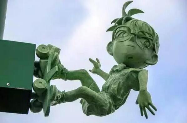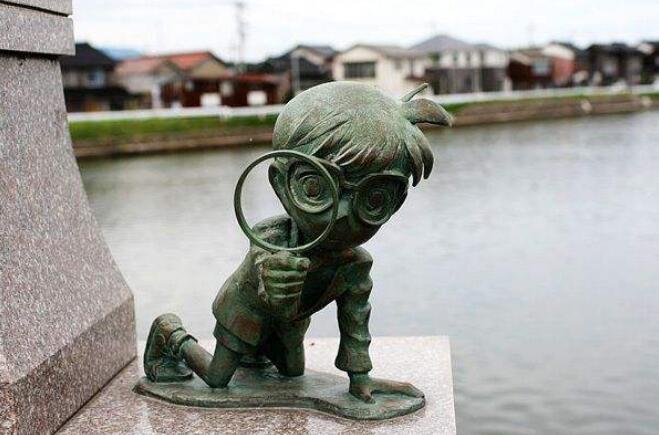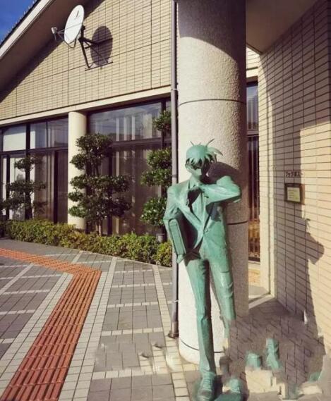 小學(xué)校和圖書館的門口也立著栩栩如生的柯南銅像!