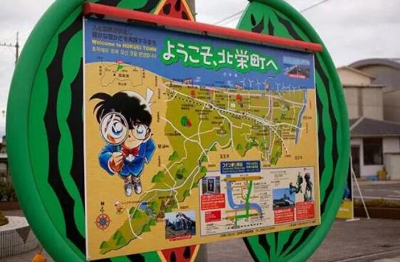 “柯南小鎮(zhèn)” 位于日本鳥取縣北榮町,原本它只是一座普通的沿海農(nóng)業(yè)小鎮(zhèn),以西瓜種植和海水養(yǎng)殖為主。但是由于它是柯南之父青山岡昌的家鄉(xiāng),北榮町政府便決定借助《名偵探柯南》這個大IP的影響力,發(fā)展當(dāng)?shù)氐闹黝}旅游業(yè)。