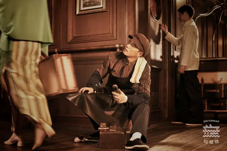 為還原當(dāng)時的歷史風(fēng)貌和生活場景,“知音號”的設(shè)計與裝修風(fēng)格完全仿造上世紀30年代的江上輪船,衣柜、燈光、桌椅等均是仿古造型,極具時代風(fēng)情,彌漫著武漢江城歷史特色、文化氣息。那些隨處可見的講究的道具、老物件——首飾盒、手杖、筆筒、鏡子等——均是幫助游客理解劇情、融入劇情的重要的“場景”元素。演藝中出現(xiàn)的故事或許是虛構(gòu)的,而游客體驗過程確是真實的,它連接每一個個體各自不同的生命體驗。