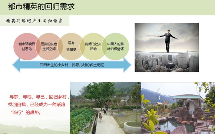 該模式從現(xiàn)代都市人群急切的想“逃離都市“的愿望出發(fā),給都市精英們一個”回鄉(xiāng)筑夢“的機會,給當(dāng)?shù)氐某擎?zhèn)化帶來更多發(fā)展契機、引來更多啟動資金、節(jié)省更多建設(shè)成本。