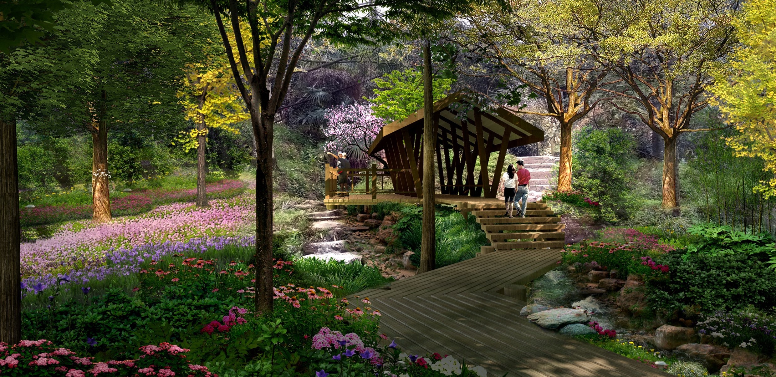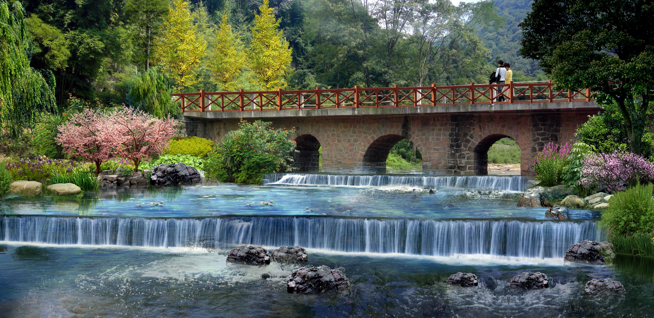 項目位于都江堰市大觀鎮(zhèn)西北方,屬大青城山旅游區(qū)組成部分,紅梅村地處青城外山北部,距鎮(zhèn)區(qū)約6公里,村莊總面積約378.89 h㎡,主要對建筑立面、村道、河道、步道、房前屋后、水體周邊、基礎(chǔ)設(shè)施進行景觀環(huán)境提升設(shè)計。
