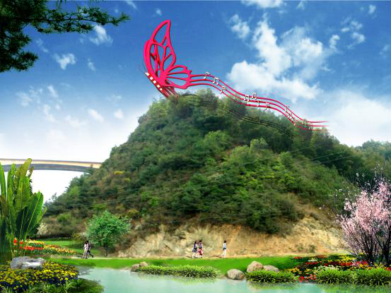 春城蝴蝶谷景區(qū)位于昆明市盤(pán)龍區(qū)雙龍鄉(xiāng)黃龍?bào)湟粠В髂吓c金殿公園相望,并近鄰昆明世博園,總面積545hm2。主要對(duì)入口以及核心節(jié)點(diǎn)景觀進(jìn)行規(guī)劃設(shè)計(jì)。
