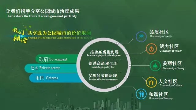 公園城市引領(lǐng)社會(huì)治理方式變革,統(tǒng)籌政府、社會(huì)、市民三大主體,以黨建引領(lǐng)城鄉(xiāng)社區(qū)發(fā)展治理,充分發(fā)揮基層黨組織核心作用,搭建法治、友善、公益的合作共治 平臺(tái),推動(dòng)城市發(fā)展、社區(qū)治理、民主參與,形成共建共享新型社區(qū)發(fā)展共同體,實(shí)現(xiàn)超大城市治理體系和治理能力現(xiàn)代化。