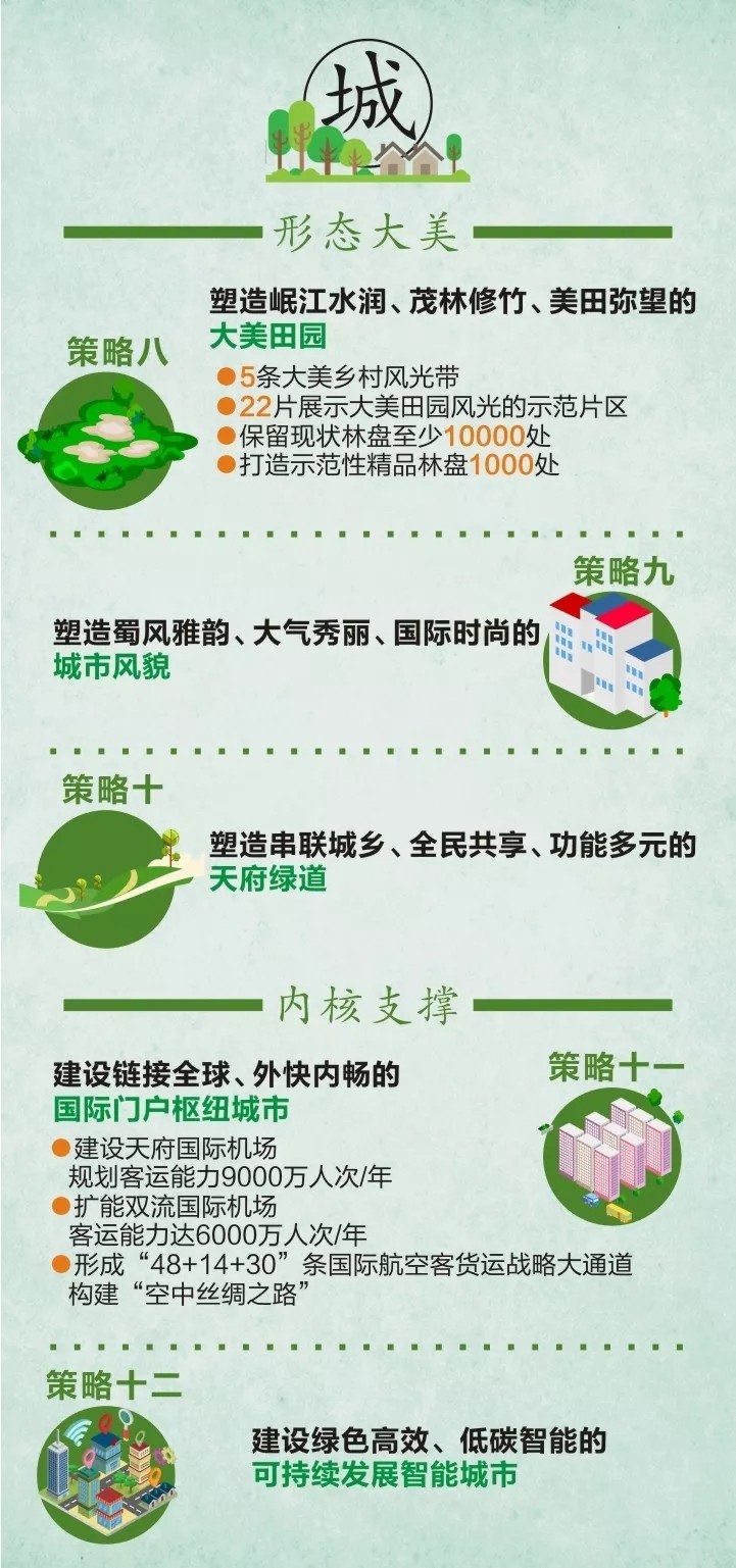 國(guó)家中心城市,順應(yīng)中華民族偉大復(fù)興引領(lǐng)城市崛起的時(shí)代機(jī)遇,重塑成都在全球城市版圖上的能級(jí)位次和責(zé)任擔(dān)當(dāng); 美麗宜居公園城市,全面貫徹落實(shí)總書記的深切囑托,構(gòu)筑人城境業(yè)高度和諧統(tǒng)一的宜居生活環(huán)境和核心競(jìng)爭(zhēng)優(yōu)勢(shì); 國(guó)際門戶樞紐城市,主動(dòng)服務(wù)國(guó)家全面開放新格局,凸顯在“一帶一路”建設(shè)中的樞紐作用,持續(xù)提升城市全球品牌價(jià)值和國(guó)際影響力; 世界文化名城,承載中華文明、天府文化走向全球的歷史使命,以文化交流互鑒助力人類命運(yùn)共同體建設(shè)。 “三步走”戰(zhàn)略和“四大戰(zhàn)略定位”共同勾勒出成都未來(lái)發(fā)展的科學(xué)路徑和美好圖景,構(gòu)筑了成都面向未來(lái)的戰(zhàn)略能力和競(jìng)爭(zhēng)優(yōu)勢(shì),為生態(tài)文明時(shí)代更好滿足人民對(duì)美好生活 向往提供成都案例。 |