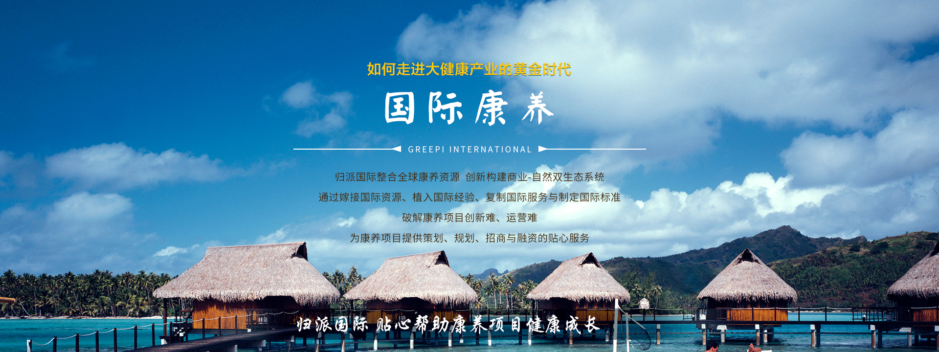 歸派國際整合全球康養(yǎng)資源創(chuàng)新構(gòu)建商業(yè)-自然雙生態(tài)系統(tǒng) 通過嫁接國際資源、植入國際經(jīng)驗(yàn)、復(fù)制國際服務(wù)與制定國際標(biāo)準(zhǔn)破解康養(yǎng)項(xiàng)目創(chuàng)新難、運(yùn)營難為康養(yǎng)項(xiàng)目提供策劃、規(guī)劃、招商與融資的貼心服務(wù)。